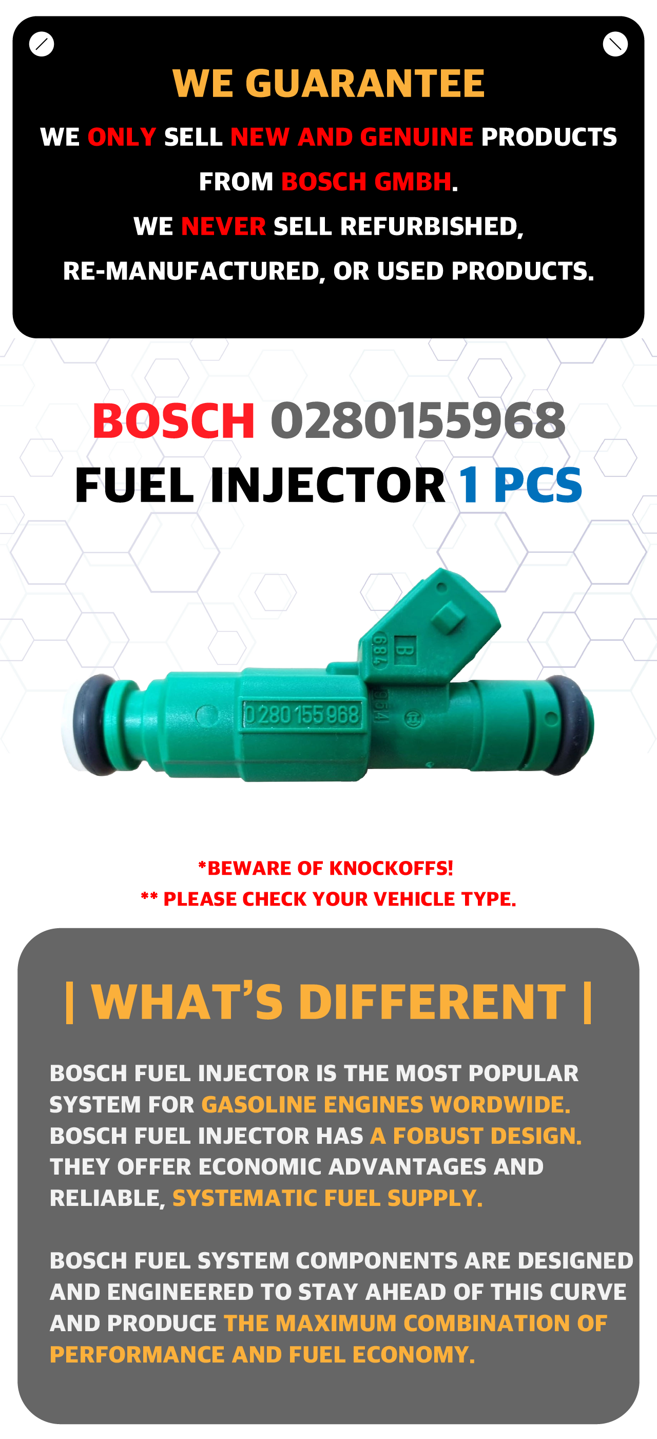 BOSCH Genuine New EV6 Injector 0280155968 453cc Volvo S60 V70 High Impedance