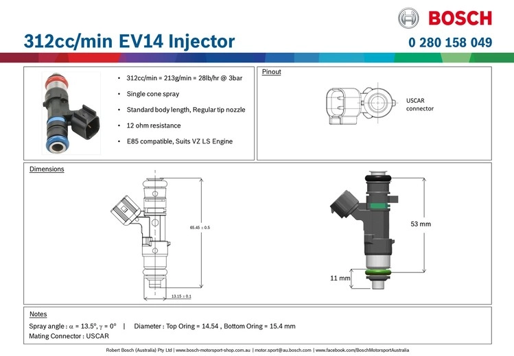 BOSCH Genuine New Fuel Injector 0280158049 28 lb 312cc EV14 89017586CS